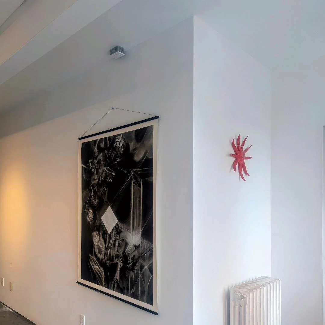 Last week I did an installation with Charles Street Video for the 2024 Geary Art Crawl. I had such a nice experience working with this team. This was my first time working with 4 projectors and an 8 piece surround sound system. I also used footage I have been working with and projection mapped it on to pieces of hung chiffon. I then collaborated with Heidi Wei-Yee Chan to create a soundscape. I was one of 3 artists presenting with CSV and I exhibited a project titled ‘Measuring Beyond Extraction’ which came out of my research on how water is used as a metaphor for data, during a residency. I used touch designer and qlabs to do most of the back end of the installation but the hardest part was actually hanging the fabrics in a way that looked nice with the projection. I love working with textiles and the effect it created worked out. I also loved hearing everyone respond the work. It was for a street festival so there was such a wide range in age that came through.